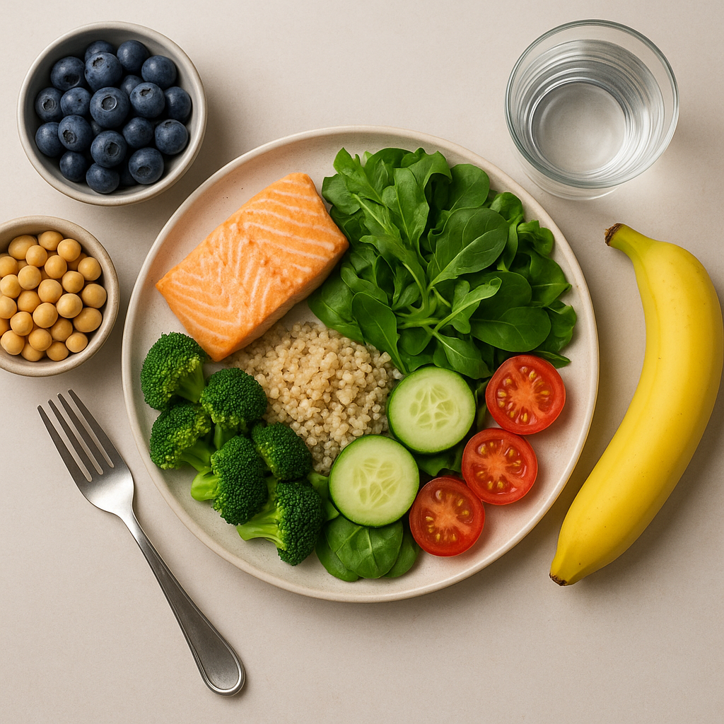 - Podwieczorek: garść migdałów (ok. 10 sztuk) i banan (dojrzały, mała porcja).