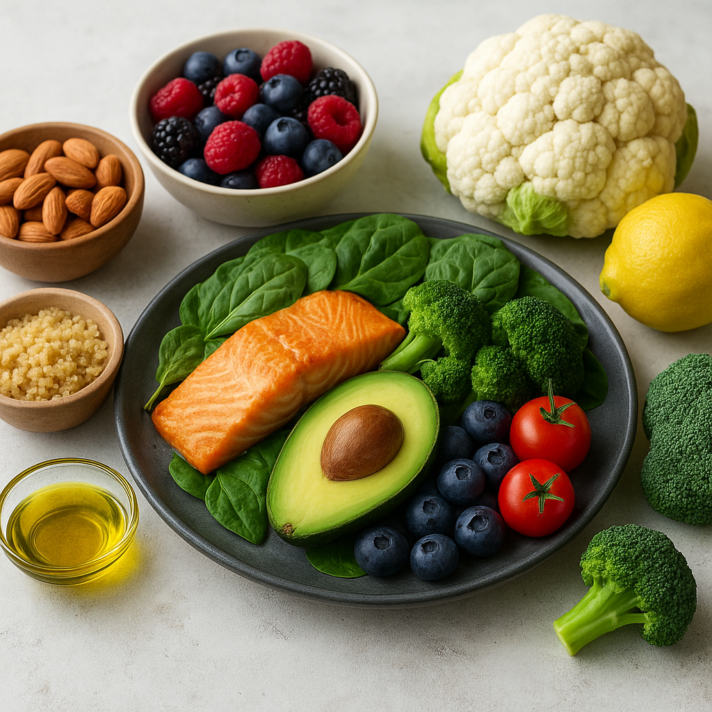 - Przeciwutleniacze – witaminy A, C, E oraz polifenole z warzyw i owoców.